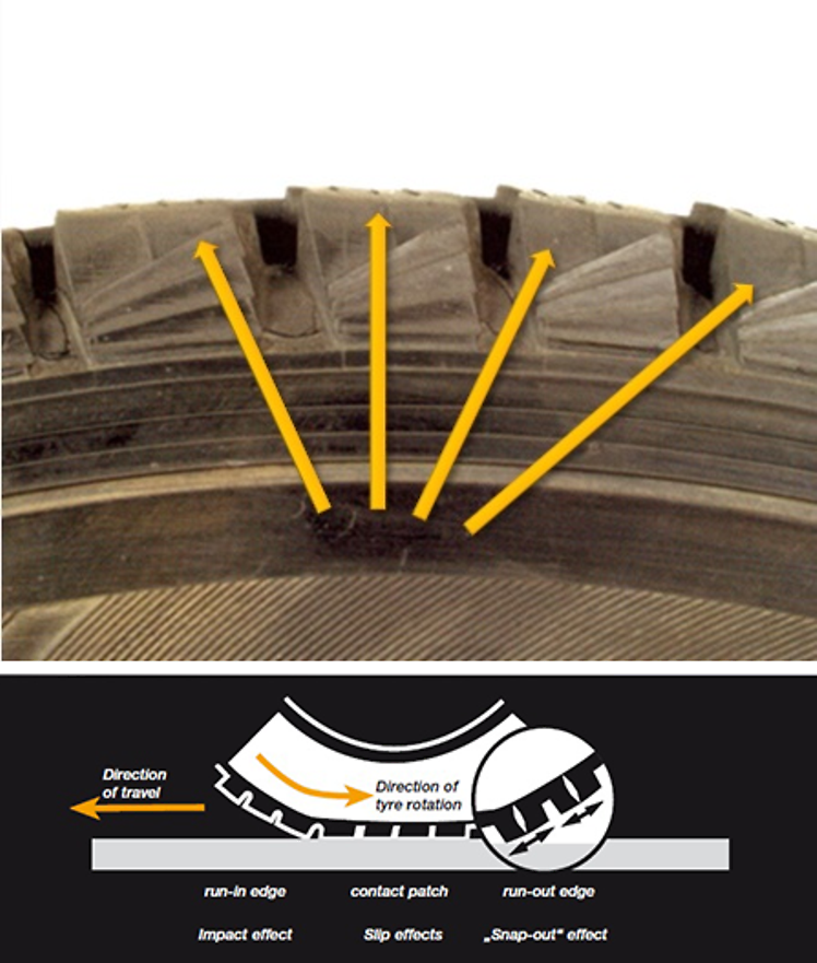 從外觀(和聲音),就能察覺作用於胎紋上的各種不同扭曲應力。
