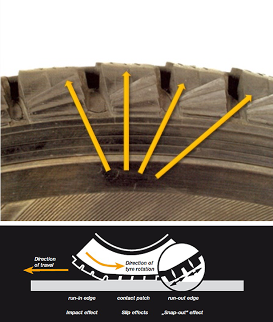 胎紋溝槽和細縫是噪音的來源,但對於確保在濕滑和積水道路上的安全是絕對必要的。